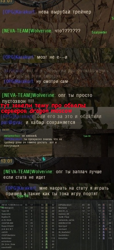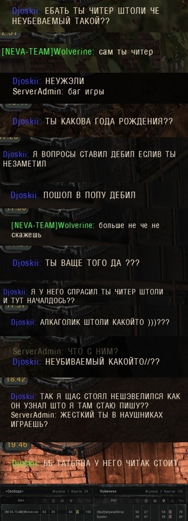| Quote (|NEVA_TEAM|PRYNIK) Андрейка честен как сухая тряпка) Ну, ты выдал! Quote (|NEVA_TEAM|PRYNIK) а вот парень который играл там, как раз с радаром, и убойкой точно! Ну, сервер не наш! Там у них свой администратор он и управляет всем. Пусть он коряво и без доказательно банит на сервере и грязью честных игроков поливает! Но сервер его и мы туда не вмешиваемся!